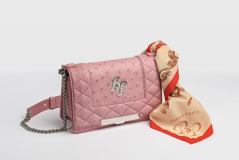 Marie Antoinette Soft Pink Ostrich Leather Chain Bag