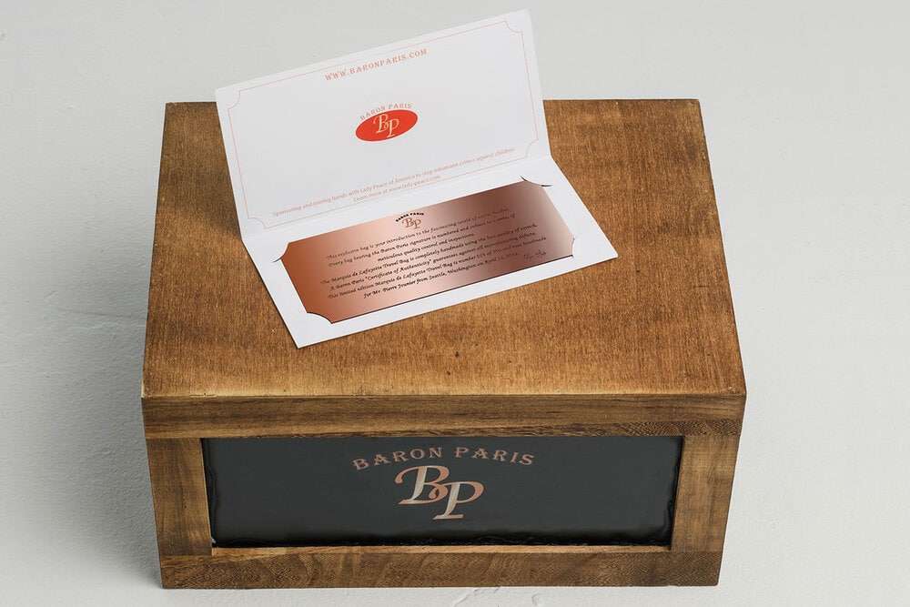 Inside, the compact yet purposeful interior secures essentials while preserving the bag’s slim profile. Each bag bears a Baron Paris limited edition insignia within the interior, denoting its position in a strictly limited production of 100 pieces.